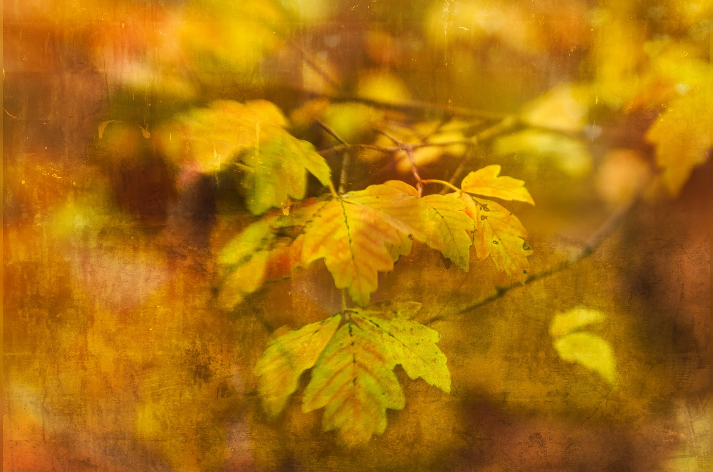 While the first image of the dogwood flower is rather subtle, this image of paperbark maple leaves in fall shows what can be achieved with heavier textures applied through Luminar Neo’s layering and blending modules. The original image was taken with the Lensbaby 2.0 and sweet 50mm lens.