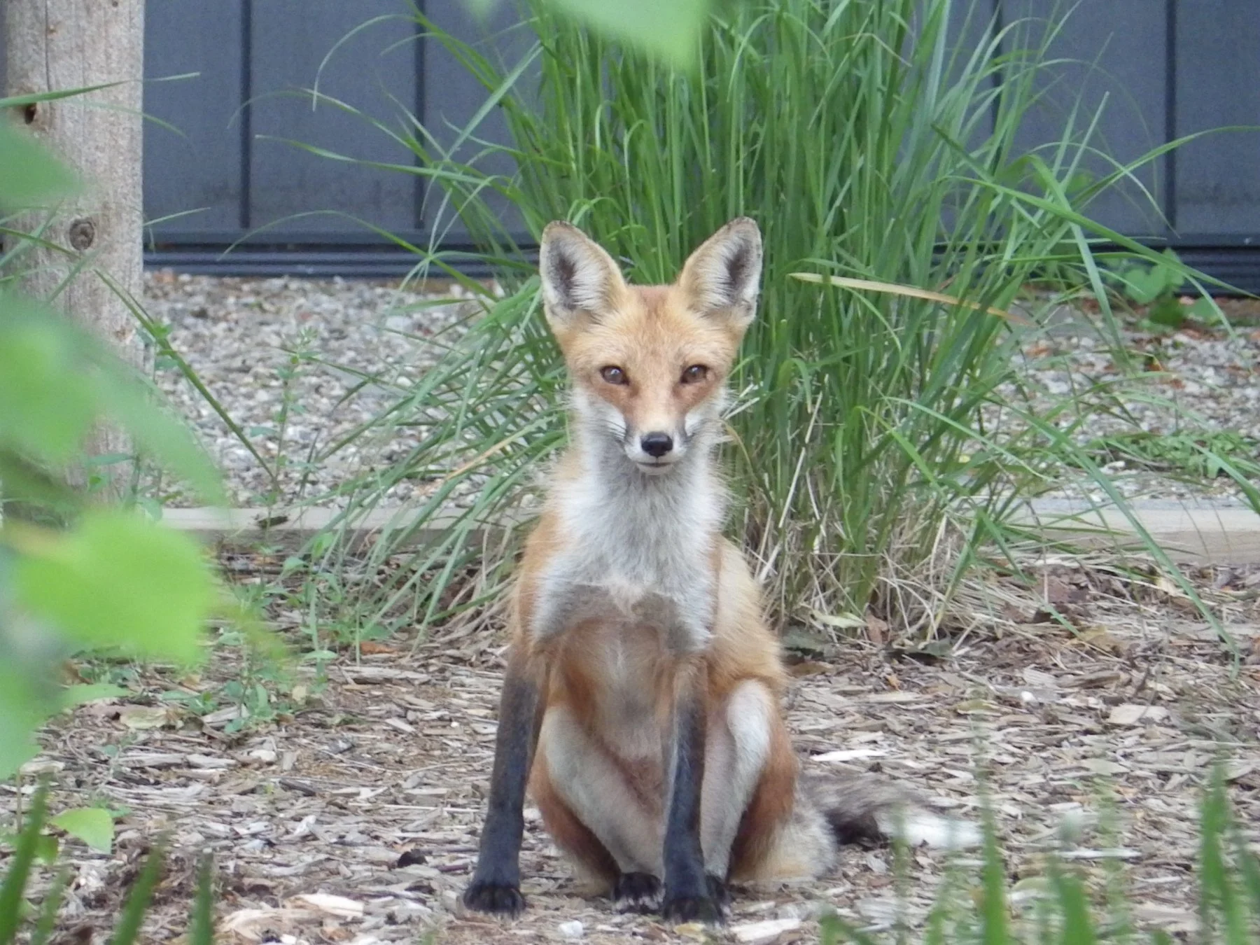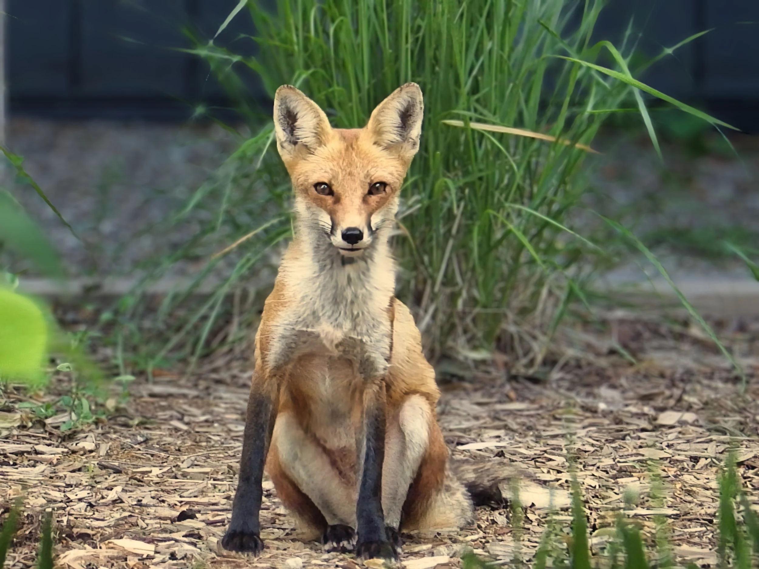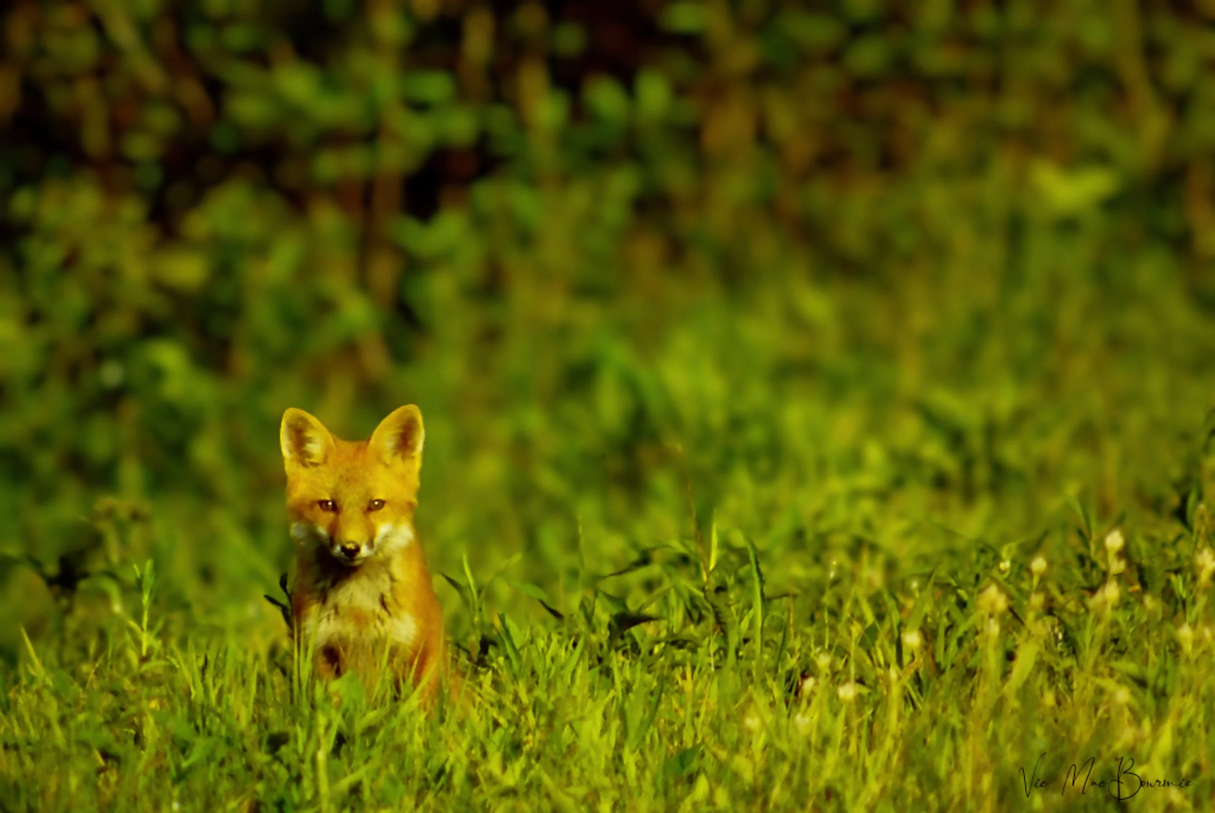 Softening the background helped this young fox stand out from distracting foliage seen in the before image below.